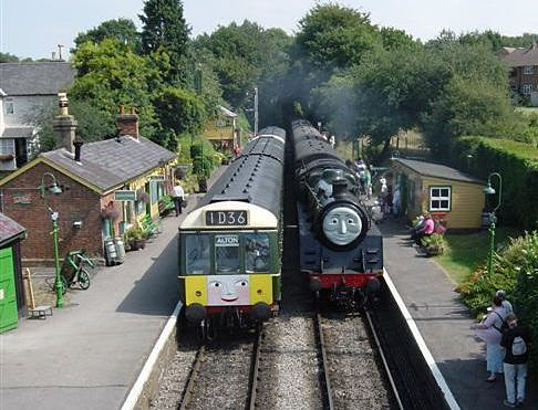 | トーマスの走る、ソドー島はアイルランドとイギリスのあいだにある、ちいさな島 今、健在イギリスで走っているのはミッドハンツ鉄道なので注意してください |