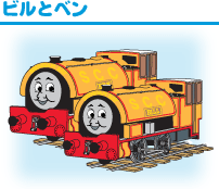 ずんぐりとして小さな双子の機関車。わんぱくで、いたずら好きなのが玉にきず。 |