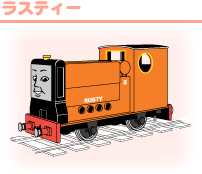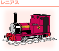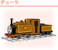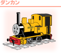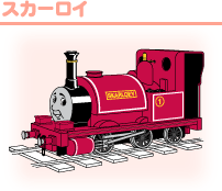 | 頑張りやの機関車で、レニアスと一緒に働いています。 | スカーロイとコンビを組んでいる機関車で、スカーロイと同じくとても頑張りやです。 | ロックロールを踊りながら走るという癖を持つダンカンはいつも文句ばかり言っています。 |