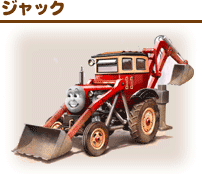 | 工事現場で働く大型のパワーショベル。 | 小型のパワーショベル。ジャックに仕事の楽しさを教えます。 | 力持ちのブルドーザー。工事現場で働く仲間です。 |