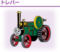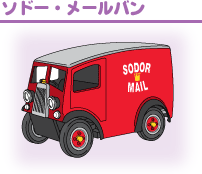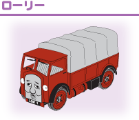 | 農場の納屋で見つかった年代もののトラック。トーマスを助けてあげたこともあります。 | 手紙や小包を、ゆうびんやのトムと一緒に村の人々に届けることが仕事です。 | 仕事を手伝いに来たはいいけれど、いばってばかりでおまけに事故をおこしてしまいます。 |